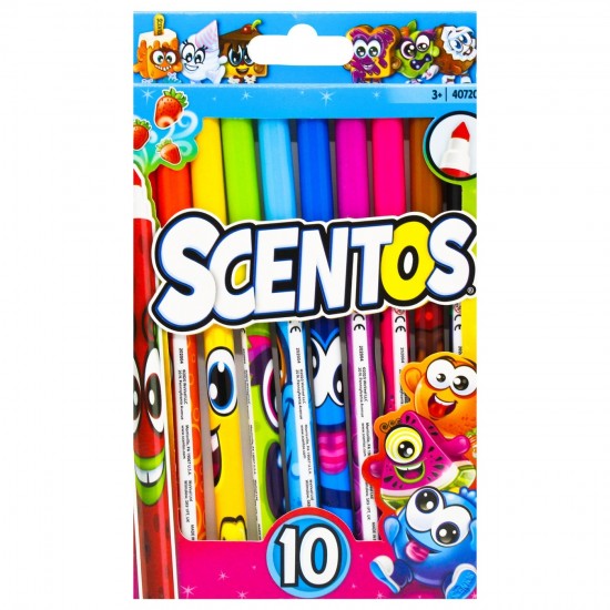 Setul de carioci aromate va teleporta copilul in lumea culorilor, texturilor, personajelor si a parfumurilor. Setul include 10 carioce colorate cu arome naturale de capsuni, portocale, banane, mar verde, afine, struguri, pepene verde, mure, piersici si zmeura albastra. Datorita formei speciale a grifului, liniile desenate vor fi mai subtiri si mai clare. Imaginile amuzante de pe carioci vor transforma procesul de desen intr-un joc real.