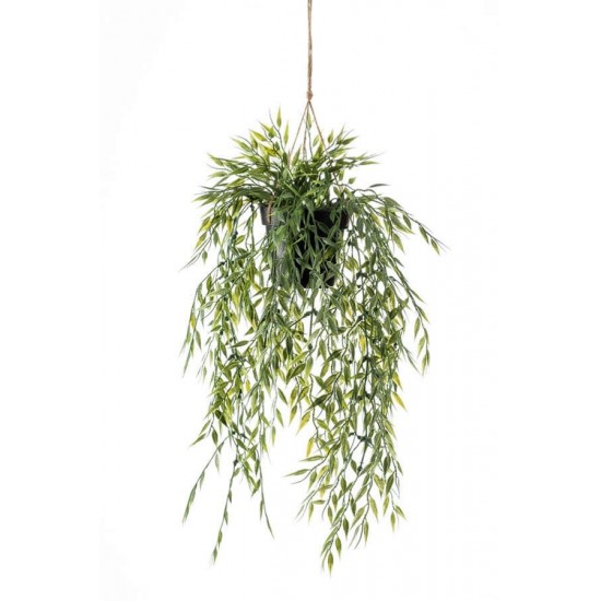Bambusul artificial suspendat de 65cm aduce o nota tropicala si relaxanta oricarui spatiu. Este amplasat intr-un ghiveci decorativ si realizat din mase plastice de calitate, fiind ideal pentru rafturi, balcoane sau colturi verzi.