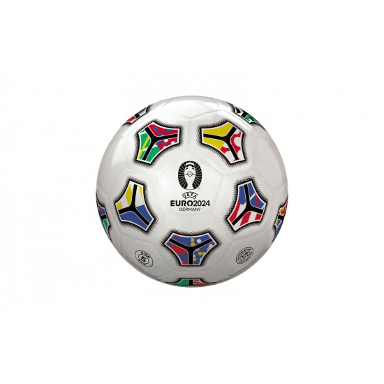 Minge de fotbal bio cu sigla oficiala UEFA EURO 2024, diametru de 230 mm, este fabricata conform unei formule ecologice care inlocuieste 50% din derivatii fosili cu derivati vegetali regenerabili. Noul material este mai elastic, considerabil mai prietenos cu mediul si faciliteaza o reciclare mai eficienta. Potrivit pentru jocul pe gazon natural si artificial.