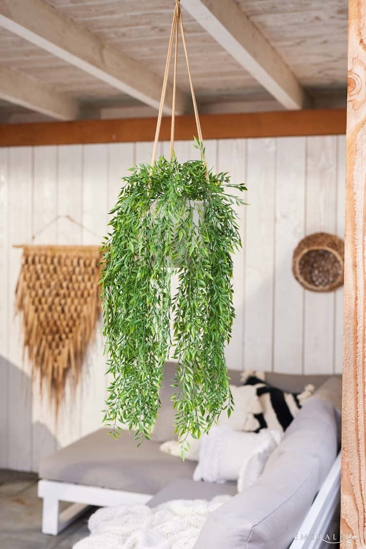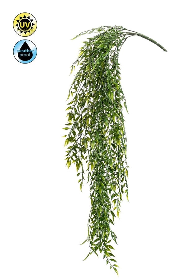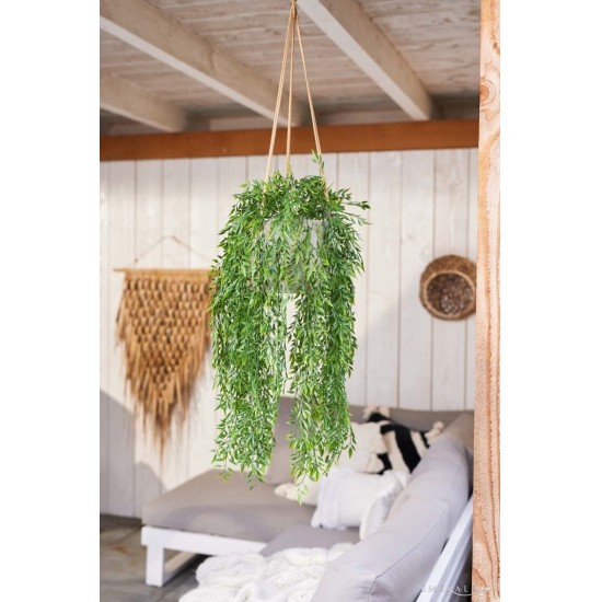 Aceasta tufa suspendata artificiala din bambus mixt, de 80 cm, este ideala pentru terase, balcoane sau spatii comerciale. Cu rezistenta UV si un aspect bogat, este confectionata din mase plastice care imita perfect frunzisul natural.