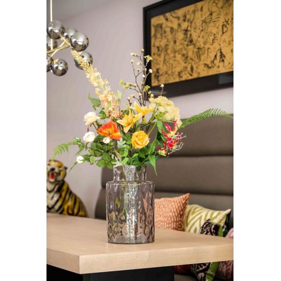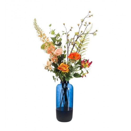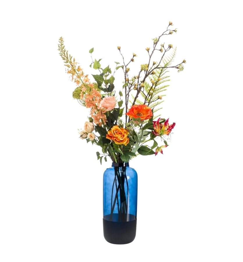 Buchetul XL "Fericire Portocalie" aduce caldura si optimism in orice incapere. Tonurile portocalii si compozitia voluminoasa atrag privirea instant. Fabricat din mase plastice, este rezistent si usor de integrat in decoruri luminoase.