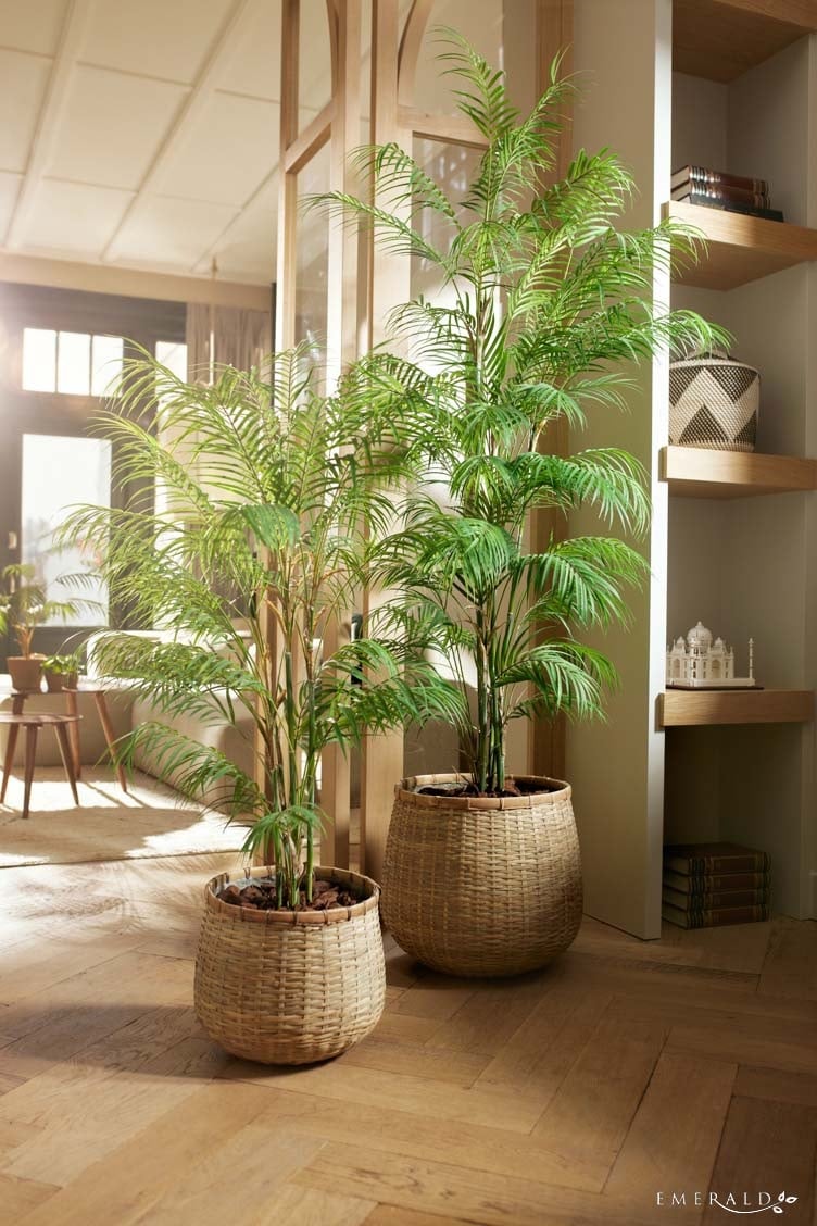 Acest palmier pitic artificial, de 120cm inaltime, este perfect pentru a aduce un strop de exotism intr-un spatiu mic. Frunzele lungi si curbate, realizate din mase plastice, ofera un aspect realist si relaxant.