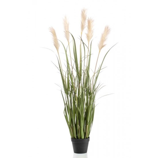 Iarba artificiala Pampas cu 5 tulpini si inaltime de 130cm este ideala pentru decoruri boho, moderne sau minimaliste. Realizata din mase plastice, are un aspect pufos si elegant.