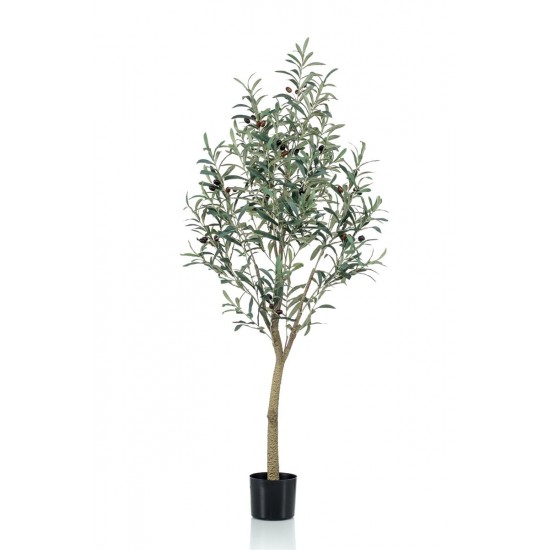 Copacul de maslin artificial, cu inaltime de 140cm, aduce un aer mediteranean autentic in decor. Frunzele fine si ramurile subtiri sunt confectionate din mase plastice, oferind un aspect calm si elegant fara intretinere.