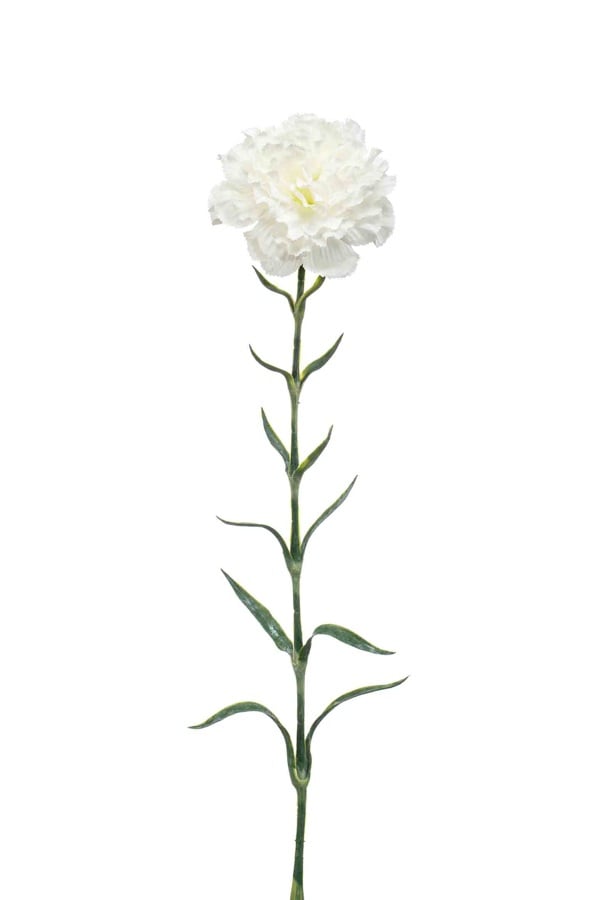 Garoafa artificiala alba de 67cm este simbolul puritatii si rafinamentului. Realizata din mase plastice de calitate, aceasta floare eleganta se potriveste perfect atat in buchete festive, cat si in decoruri minimaliste.