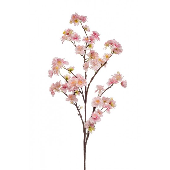 Ramura artificiala de cires cu flori roz deschis, lunga de 120 cm, este ideala pentru buchete ample sau decoruri cu tematica primavaratica.
