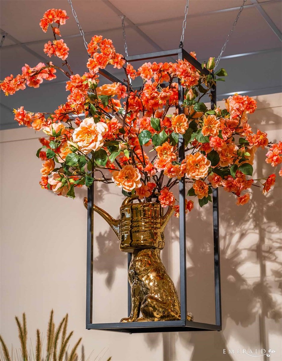 Ramura artificiala de cires cu flori rosii, 120 cm lungime, este perfecta pentru accente vizuale puternice si decoruri orientale sau de sarbatoare.