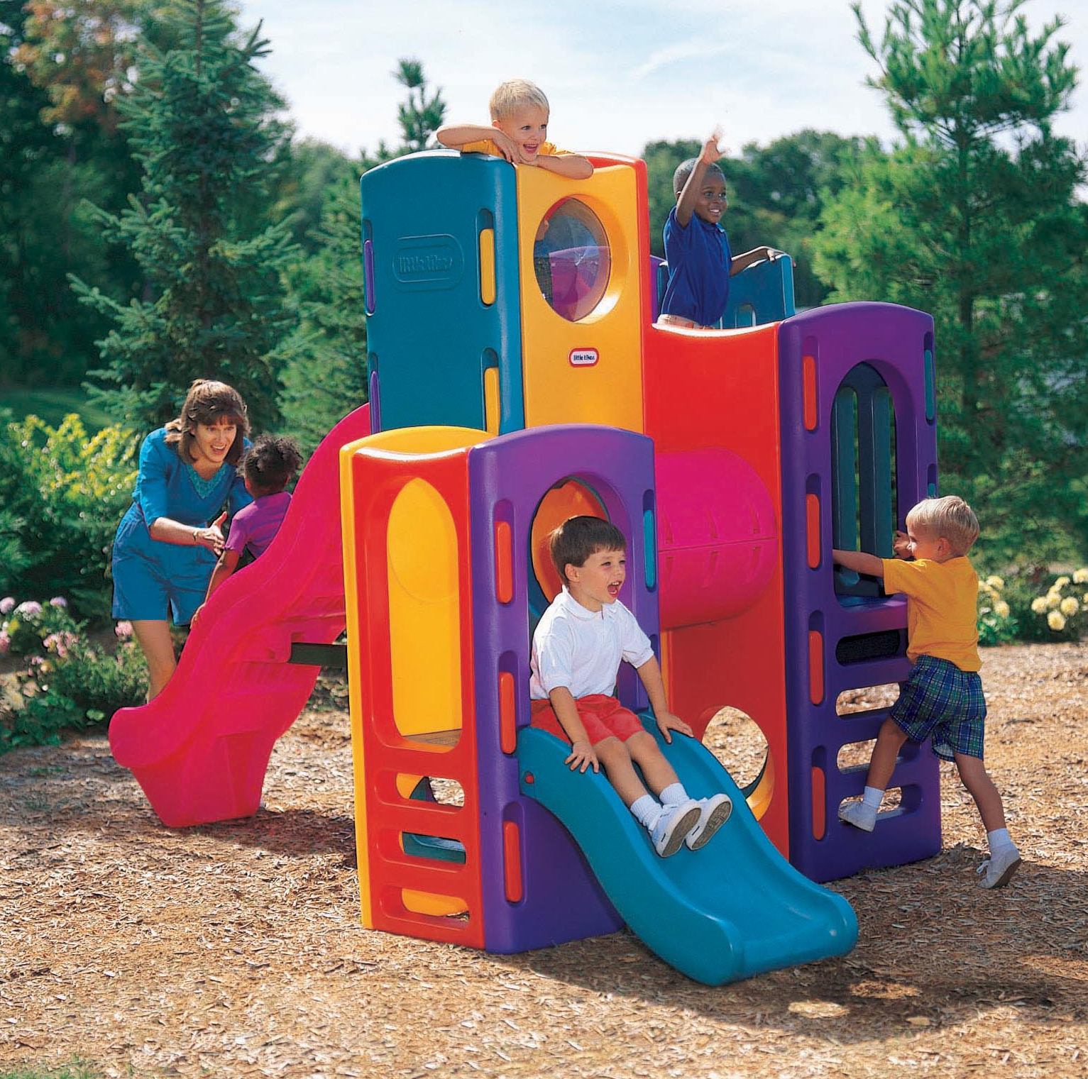 Complexul de joaca cu patru nivele de la Little Tikes ofera o multime de posibilitati pentru desfasurarea a diferite jocuri in aer liber pentru copiii de toate virstele.