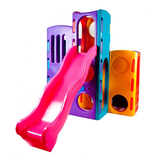 Caracteristici: spatiu mare de adapost, trei zone diferite de joc, dotat cu doua tobogane cu o lungime a coboririi de 90 de cm si 180 de cm, tuneluri de tranzitie printre nivele. Complexul are si un turn de observatie cu hublou. Copiii pot urca pe pereti ca alpinistii. Complexul de joaca de la Little Tikes este perfect pentru jocurile de-a v-ati ascunselea. In acelasi timp se pot juca pina la 8 copii.