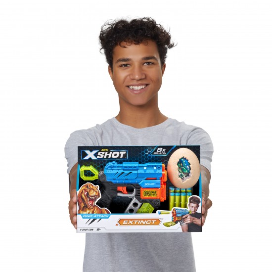 Te asteapta o noua aventura, cu X-Shot Dino Attack Extinct, esti gata de lupta. Uimitor, acum poti fi un adevarat vanator de dinozauri. Inarmeaza-te cu pistolul cu cartuse si incepe goana dupa cele mai minunate si uriase mamifere care au trait vreodata pe pamant.