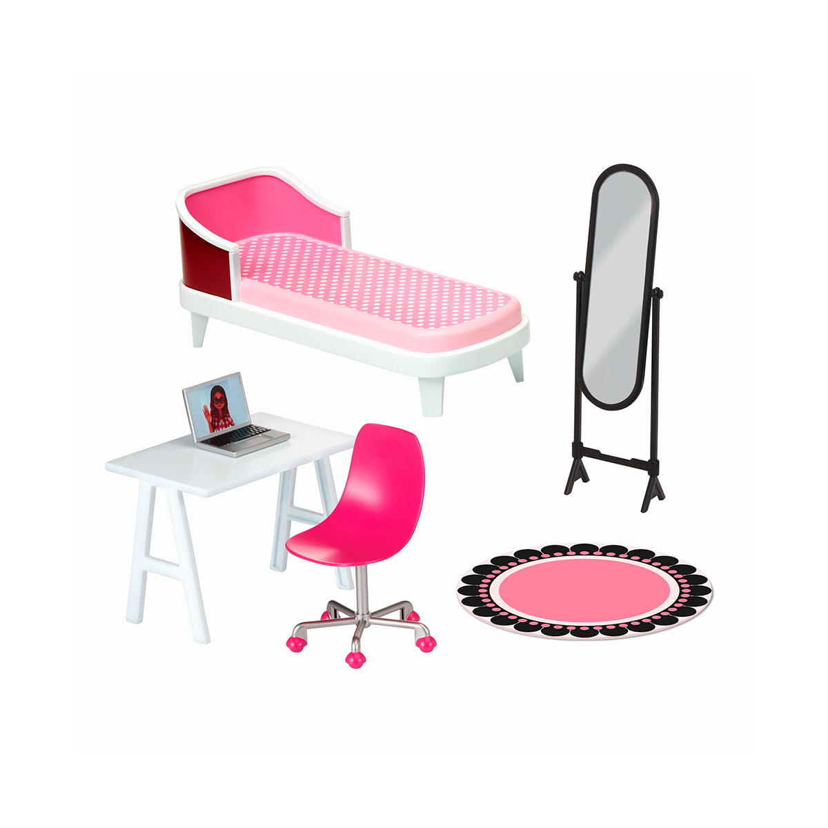 Setul de joaca 2 in 1 Dormitor si balconul lui Marinette va va ajuta sa recreati scenele preferate din desenul animat. Casuta cu doua etaje are are o inaltime de 60 cm si include un pat, o oglinda, o masa cu un scaun, un laptop si chiar un covor rotund. Balconul poate fi accesat prin usi secrete.