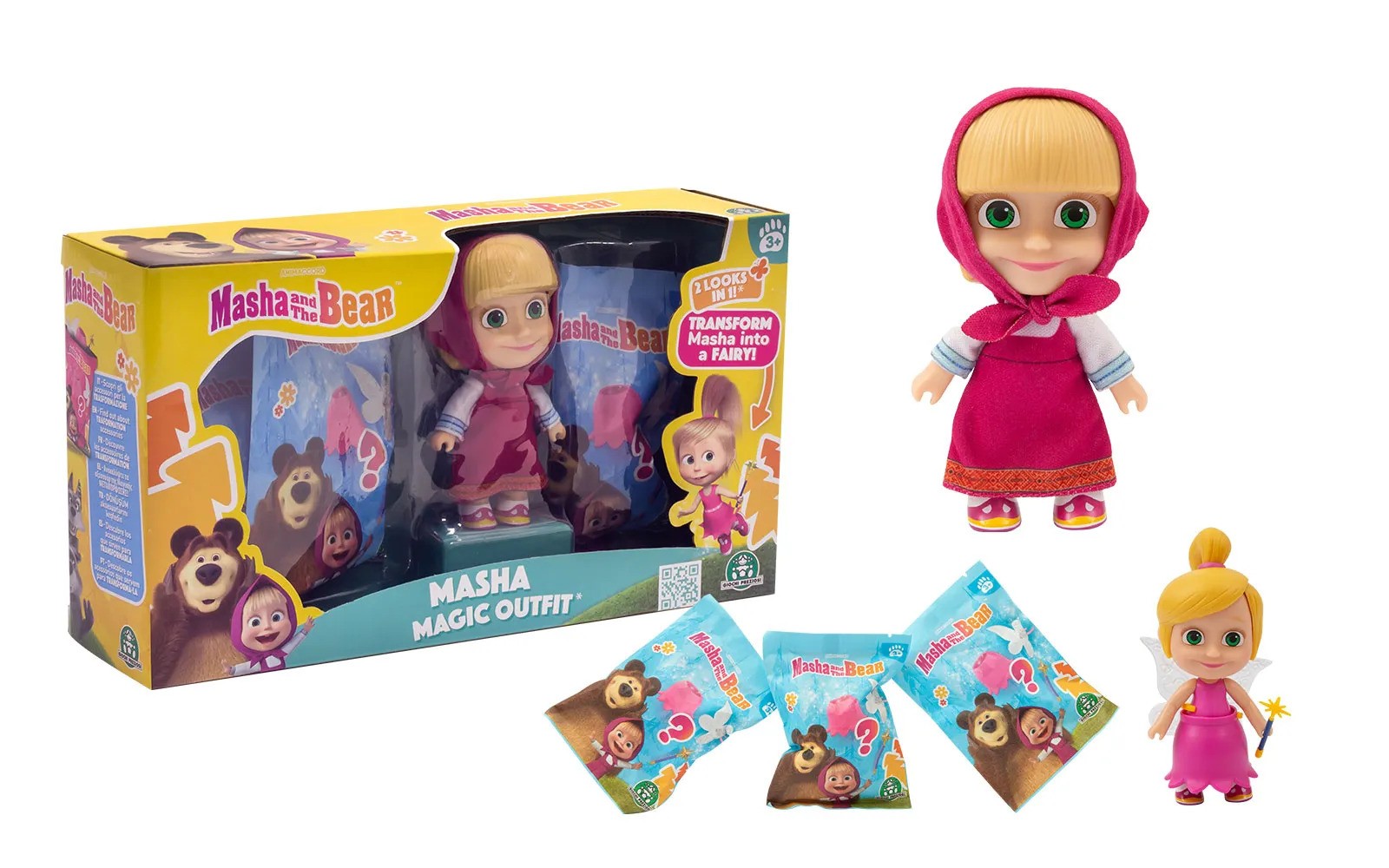 Descopera setul "Masha and the Bear - Ma?a Magic Clothing" (cod 17199) - o jucarie creativa care aduce la viata transformarea personajului preferat! Setul include o papusa Ma?a de 12 cm, cu par si haina detasabile, plus 3 plicuri-surpriza si 4 accesorii speciale pentru transformari surprinzatoare.