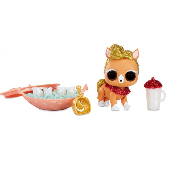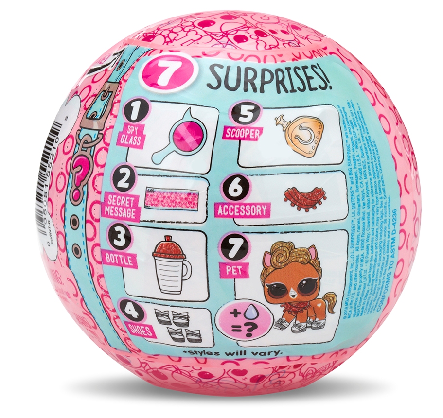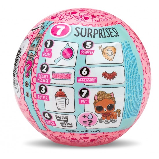 L.O.L. Surprise Pets ofera 7 straturi cu surprize! Fiecare strat prezinta cite un indiciu cu care veti obtine LOL Surprise Pets! Exista un nou mod de a despacheta accesoriile, si anume veti putea scoate surprizele dintr-o noua cutie mica. Setul include: autocolant secret, pantofi, accesorii, si LOL animalute cu surpriza, atunci cind ii introduceti in apa bilele se transforma intr-o geanta, intr-o baita pentru papusi si intr-un set de jucarii.