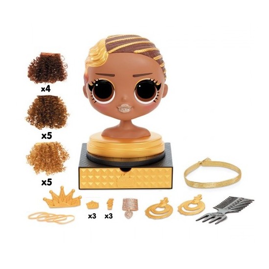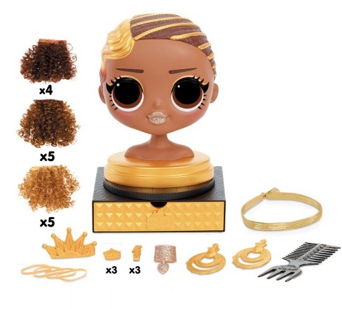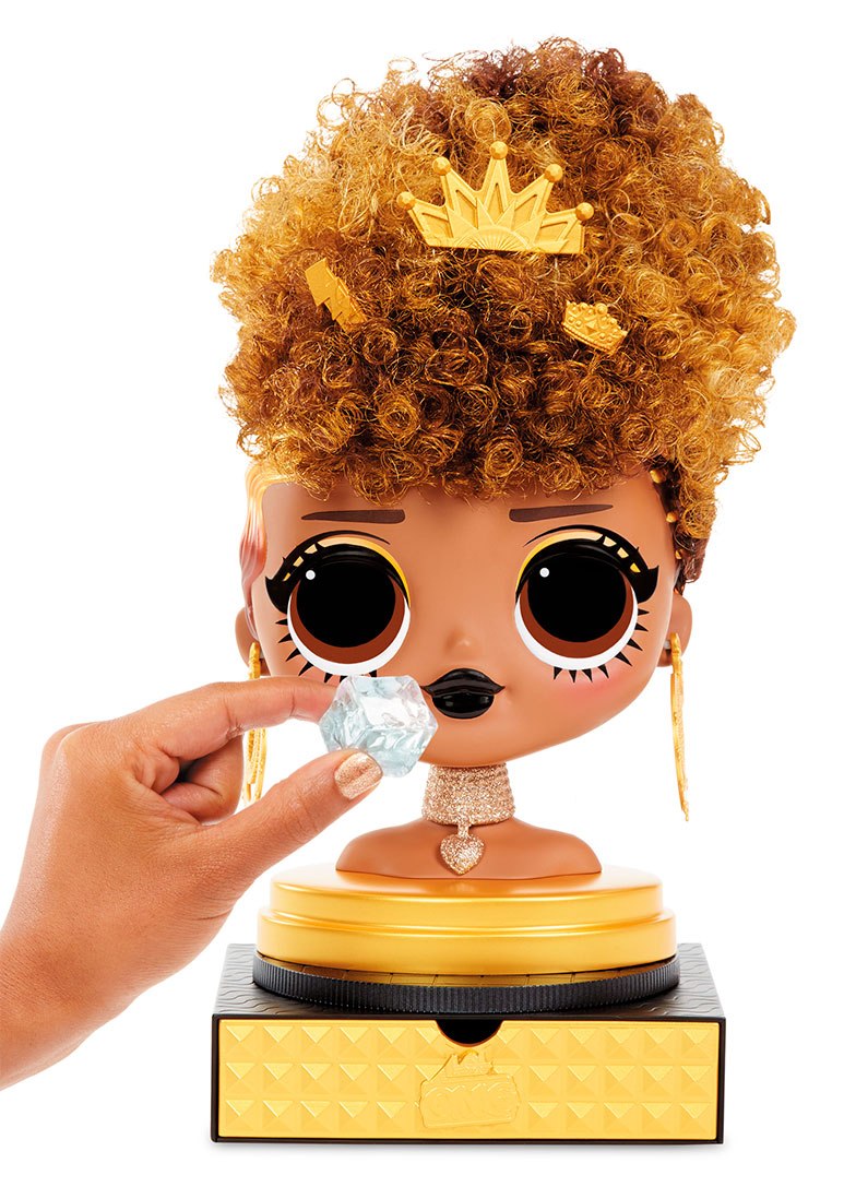 Creati-va propriile coafuri pentru L.O.L. Surprise! seria "O.M.G". schimba imagini si stiluri - este atat de distractiv! Queen Bee are bucle magnifice de aur in maro.