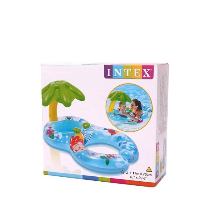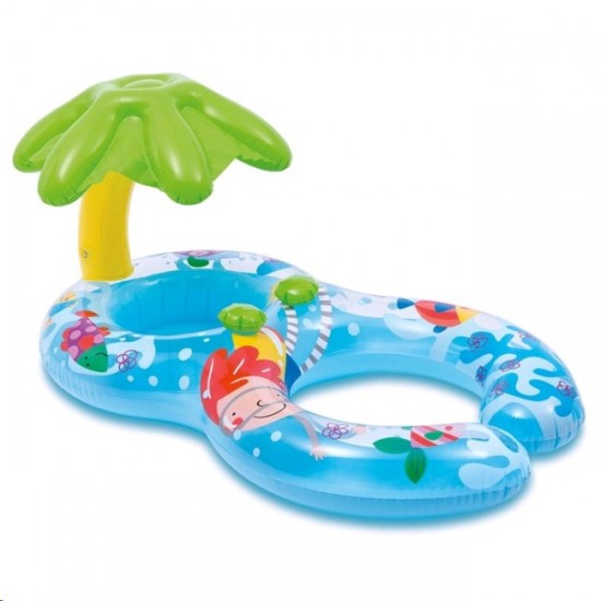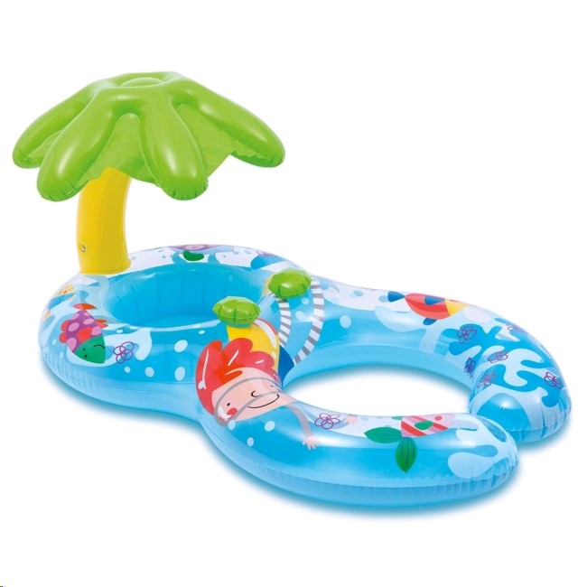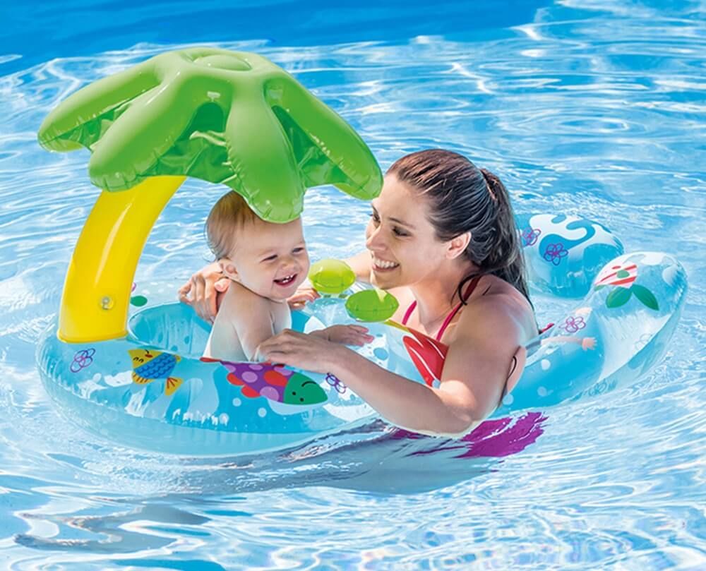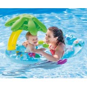 Cercul gonflabil pentru inot "Mama si bebelusul" din seria Baby Floats de la Intex este o pluta pentru doua persoane. O parte este facuta sub forma de scutec cu gauri pentru picioare, a doua parte este sub forma unui cerc gonflabil. Astfel, un copil foarte mic poate inota cu mama sa. Cercul cu gauri pentru picioare este echipat suplimentar cu un baldachin sub forma unui palmier.