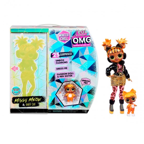 Papusa L.O.L. Surprise! O.M.G. Winter Chill Missy Meow & Baby Cat Doll
