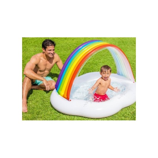 O alegere perfecta pentru cei mai mici exploratori! Piscina gonflabila "Curcubeu" de la Intex ofera un spatiu sigur si colorat pentru joaca si racorire in zilele calduroase. Designul vesel cu curcubeu aduce un plus de magie in curtea ta!