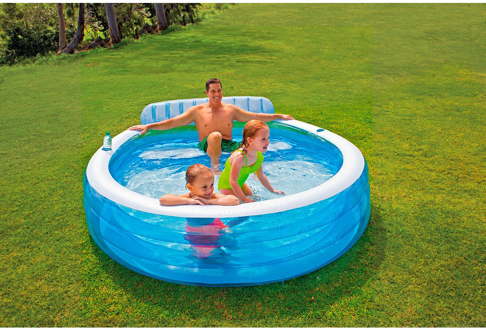 Piscina gonflabila de familie Intex Lounge, cu Spatar si 2 Suporturi pentru pahare, 229 x 218 x 79 cm, 590 L