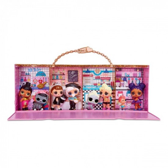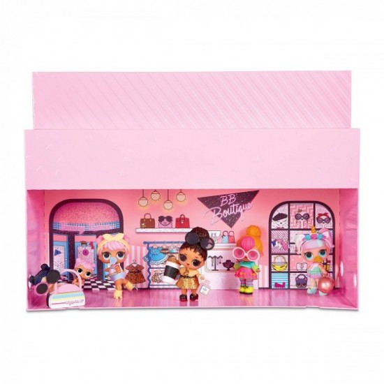Pe de o parte, setul este o zona de joaca cu mai multe magazine mici si elegante pentru jocuri de rol cu fashioniste L.O.L. si, pe de alta parte, un podium pentru a prezenta o colectie de 36 de papusi sau animale de companie. In plus, podiumul este transformat intr-o carcasa comoda, in care poti depozita mai mult de 55 de papusi!