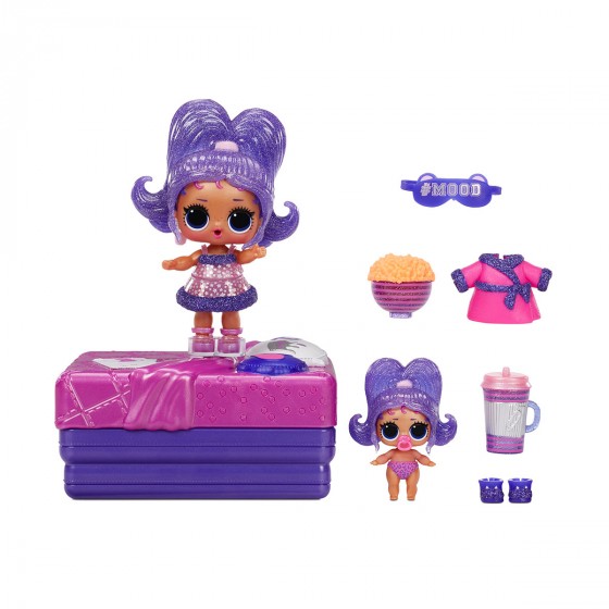 Accesorii elegante, o jucarie pop, o papusa exclusiva si o sora mica sunt cea mai buna surpriza pentru o fata! Tema noului SUPER CADOU este o petrecere cu pijamale! Si o cutie mare, luminoasa, cu o panglica si o carte postala face ca L.O.L. Surprise! sa fie un cadou perfect!