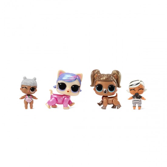 Include 2 papusi O.M.G, 6 papusi standard L.O.L. SURPRISE!, 2 surori si 2 animale de companie.
