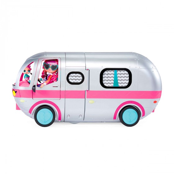 Super set L.O.L. SURPRISE! - GLAMOUR 4 IN 1 CAMPER - camper elegant actualizat pentru calatorii nebunesti. Combinatia dintre acoperirea argintie si elemente fucsia stralucitoare nu va va lasa indiferenti!