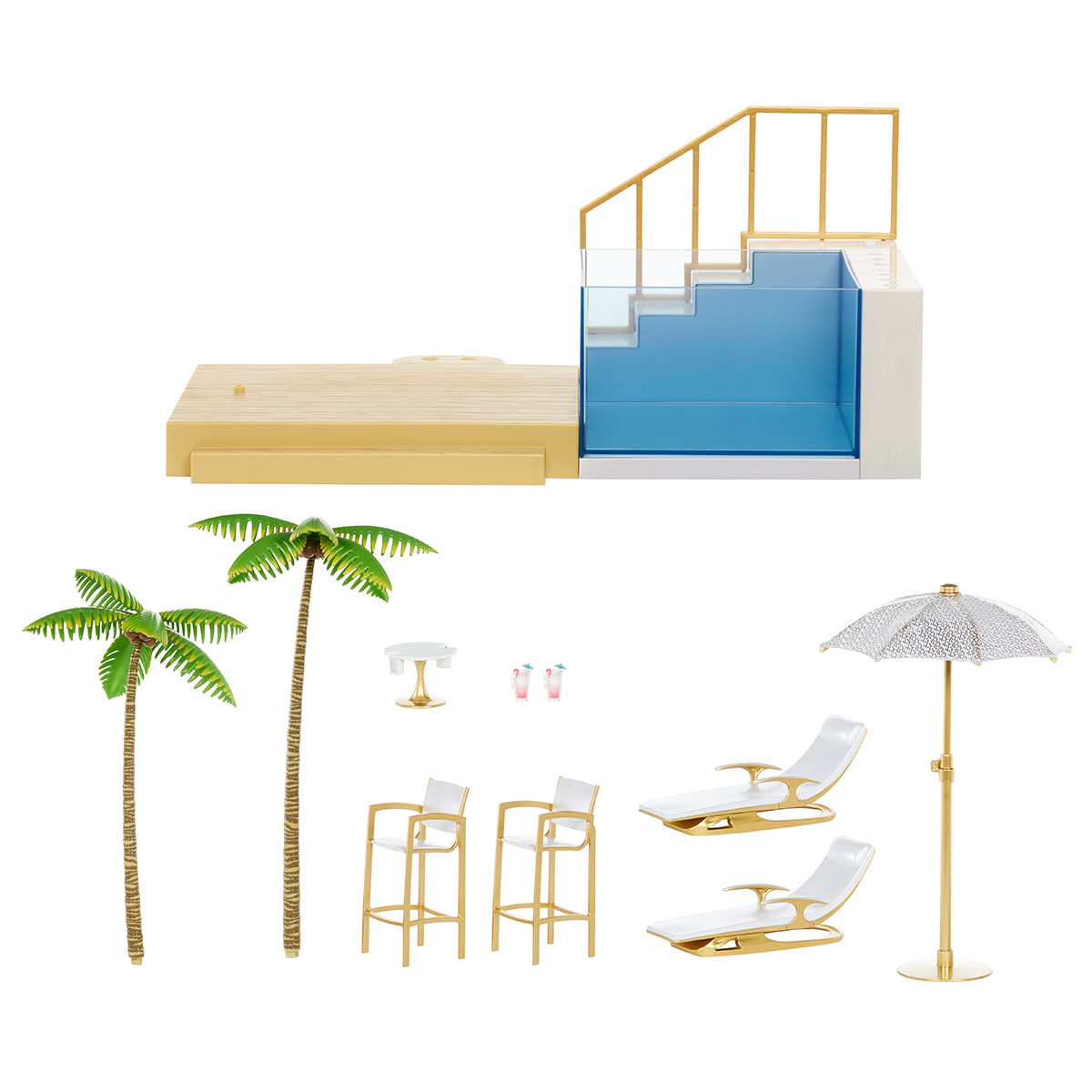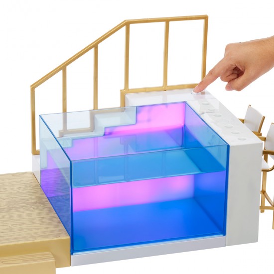 Set de joaca Piscina cu lumini si Club de plaja Rainbow High seria Pacific Coast
