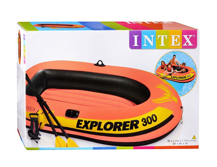 Barca gonflabila “Explorer 300” cu vasle si pompa, 211x117x41 cm, pana la 186 kg, 6+, INTEX