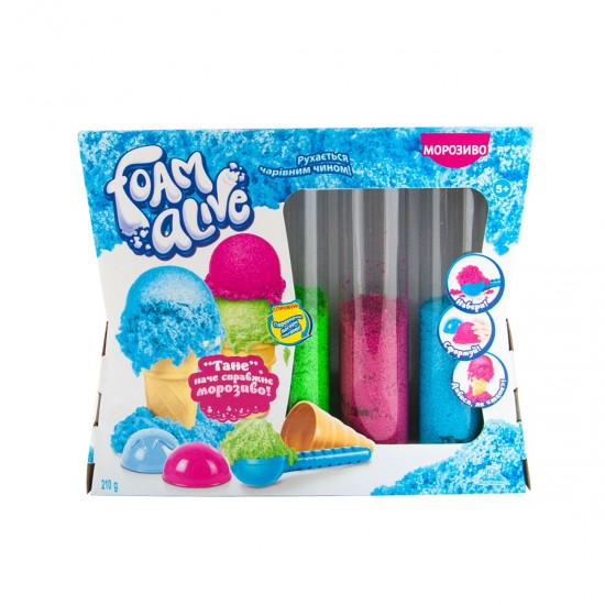 Foam Alive este o spuma moale, pufoasa, care se misca misterios in "Flow Motion". Rotiti pachetul si urmariti cum se misca spuma in interior. Luati in maini spuma si vedeti cum se scurge printre degete! Nu se usuca si nu se lipeste de suprafete.