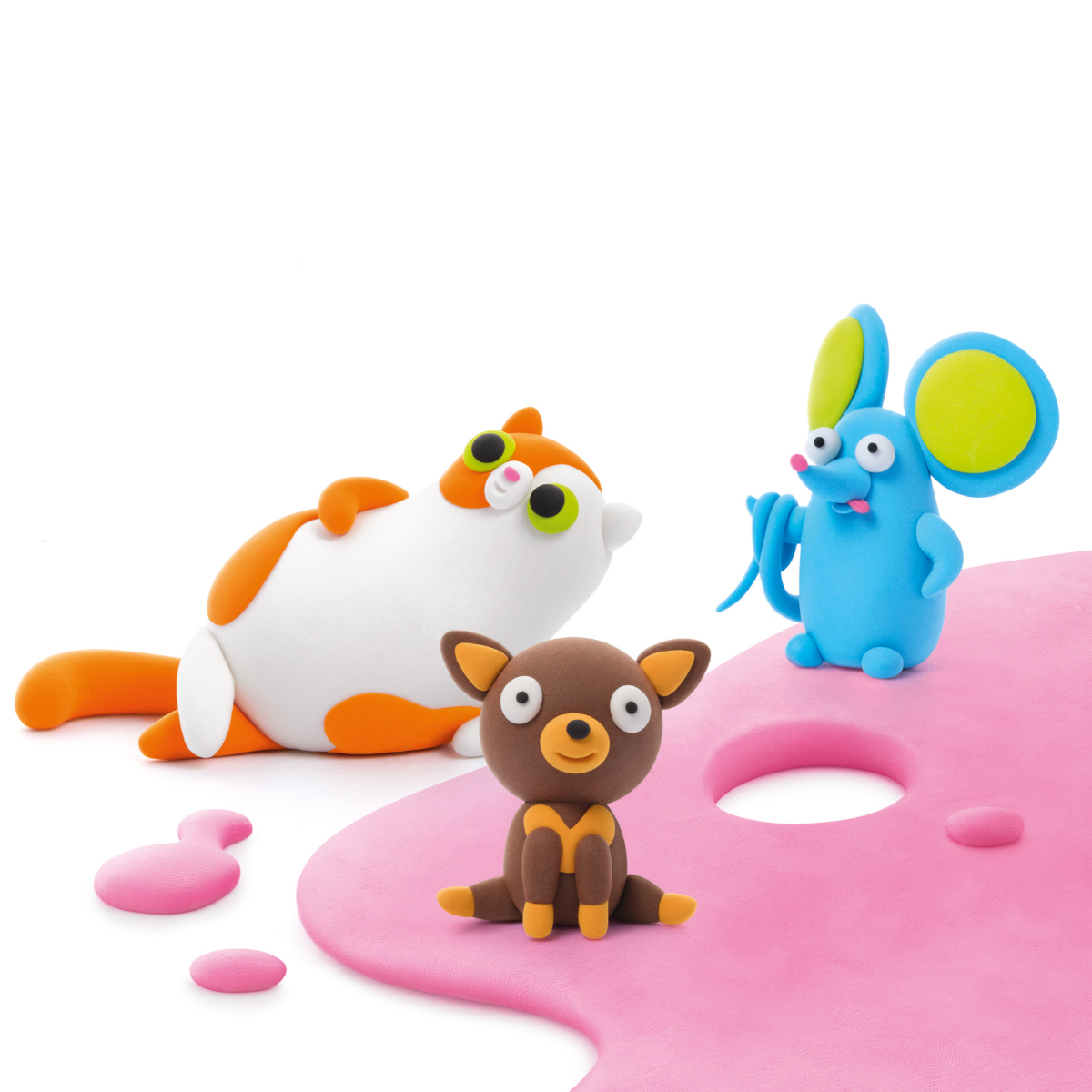 Set Pasta de modelat care se usuca in 24h, 3 figurine Animale de companie pufoase, Lipaka
