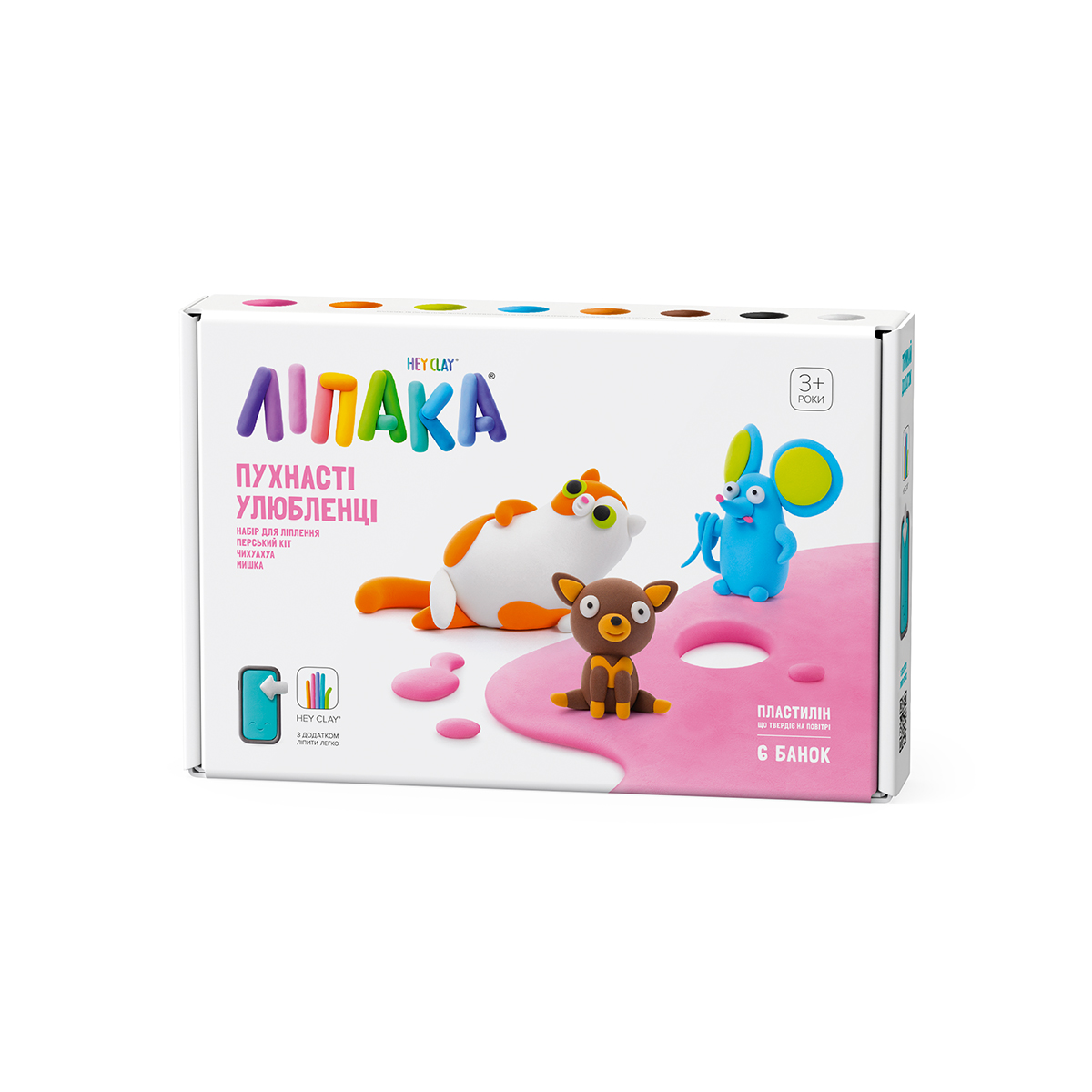 60045-UA01 Set Pasta de modelat care se usuca in 24h, 3 figurine Animale de companie pufoase, Lipaka