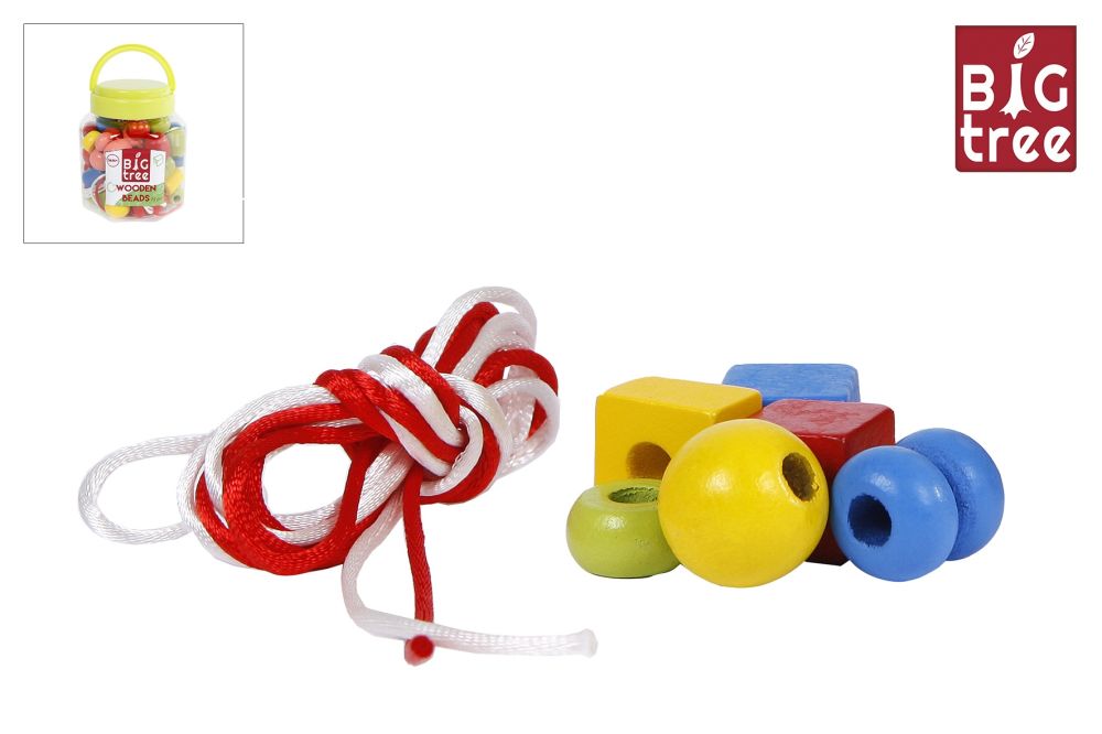 610069 Margele din lemn cu sfoara in borcan 72 el. 9x11cm