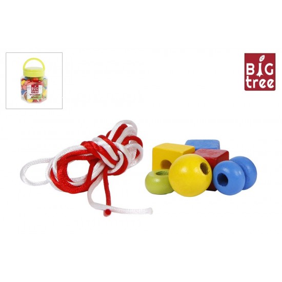 Margele din lemn cu sfoara in borcan 72 el. 9x11cm