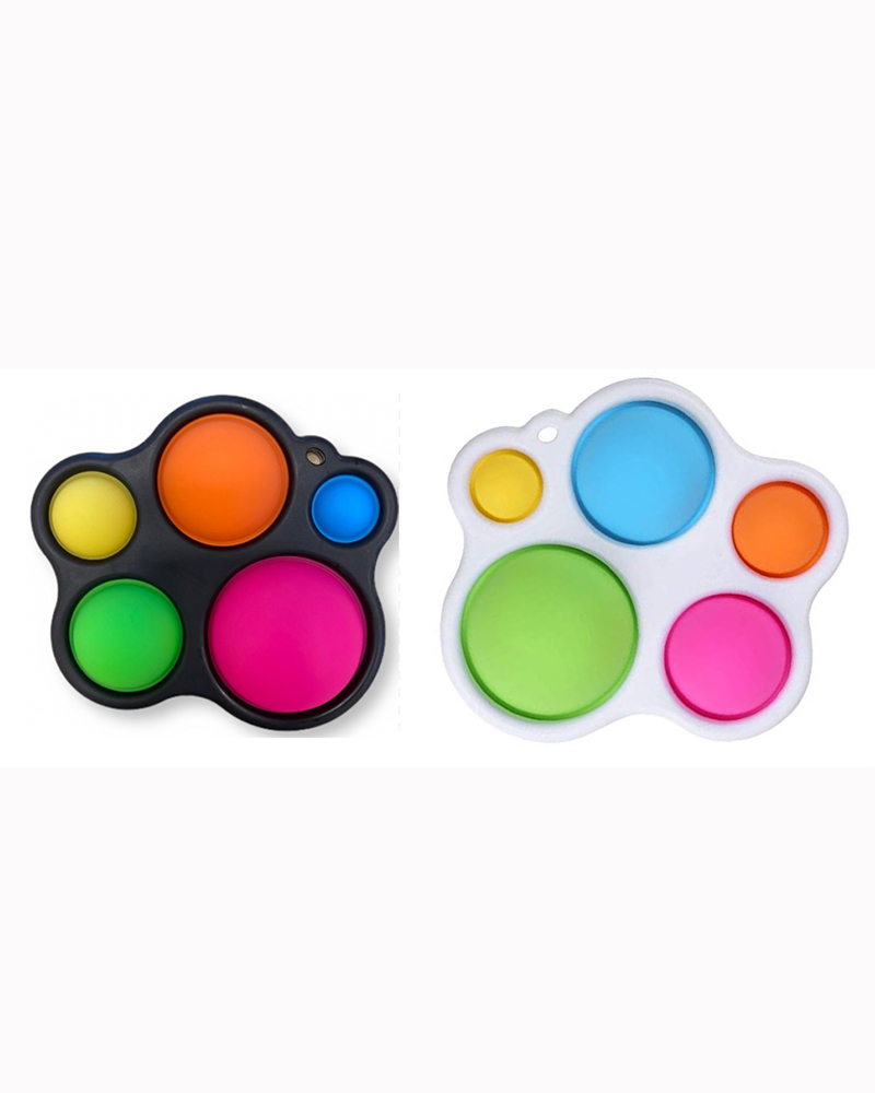 Jucaria senzoriala Dimple formata dintr-un cadru de plastic ce sustine 5 bule de silicon colorate in culori vibrante, ajuta copilul la constientizarea relatiei cauza-efect. Simpla si foarte distractiva jucaria a carei siguranta a fost pe deplin testata, mentine atentia degetelelor dornice de descoperiri. O aventura senzoriala careia nu ii poate rezista nimeni! Jucaria este fabricatra din silicon si plastic ABS de inalta calitate ce poate fi utilizata in siguranta datorita materialelor sigure. Poate fi carata cu usurinta in bagaj, ghizdan, ruscasc datorita dimesiunilor si greutatii ce il fac usor de transportat. Este potrivita pentru orice varsta, atat pentru copii cat si pentru varstnici. Stimuleaza calmul si concentrarea, amelioreaza stresul si dezvolta abilitati motorii fine, coordonarea, atentia, indemanarea. Bulinutele sunt fabricate dintr-un material din silicon moale, sigure, netoxice, durabile, rezistente la rupere, nu se deterioreaza usor. Se spala si dezinfecteaza cu usurinta, fiind reutilizabila si lavabila. Usor de transportat si poate fi folosita oricand.