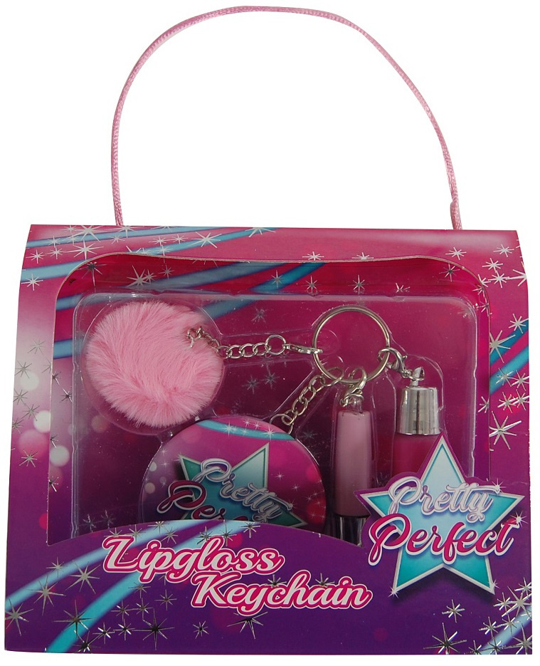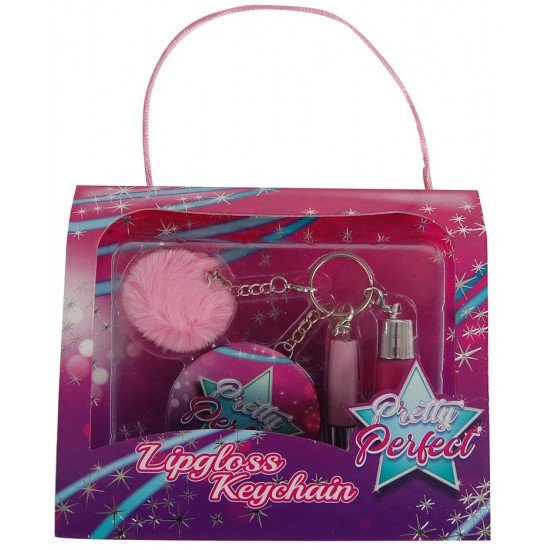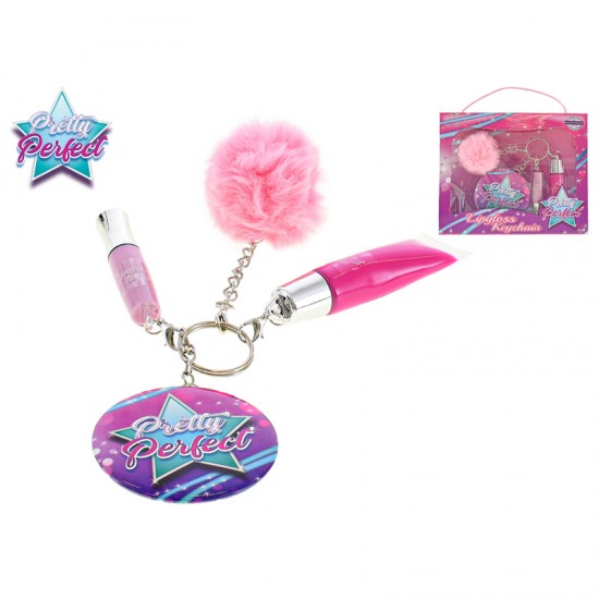 Set breloc cu pom pom, 2 balsamuri de buze si oglinda Pretty Perfect