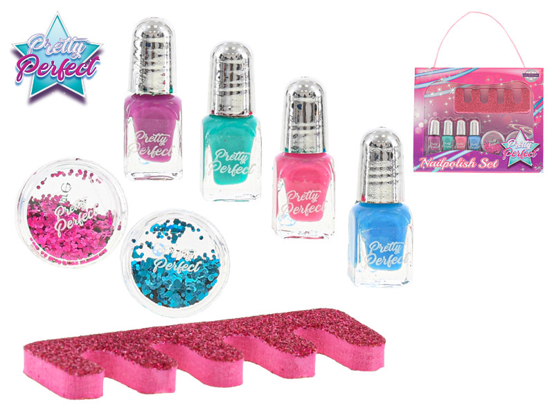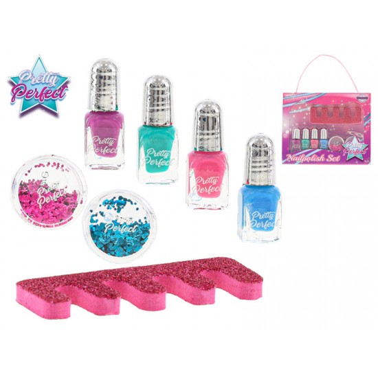 Set manichiura 4 oje, burete separator si sclipici Pretty Perfect