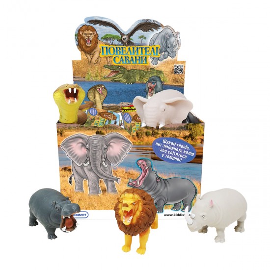 Haideti intr-o calatorie cu Stapanii Savanei pentru a descoperi marele elefant african si Regele Leu. Ai grija! Un hipopotam! Si un rinocer! Aflati care dintre ele isi schimba culoarea sau lumineaza in intuneric! Colectioneaza-le pe toate!