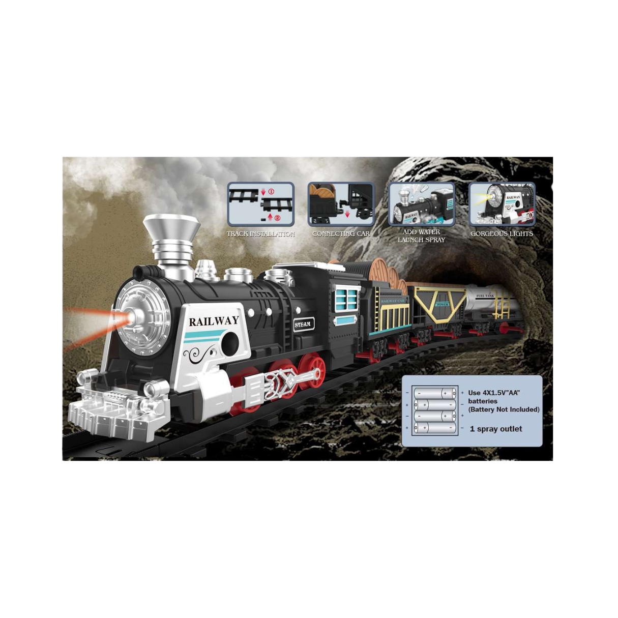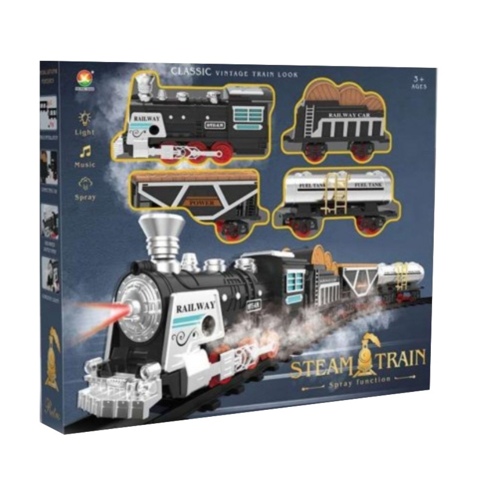 Setul este format din elemente realizate cu precizie si frumos finisate, care pot fi aranjate dupa propria imaginatie. Mai mult, trenul emite efecte de fum, lumini si sunete.