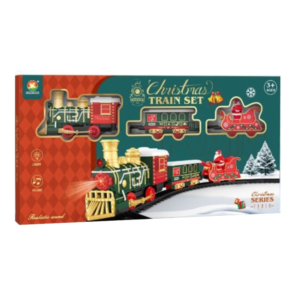 Set Tren Classic Christmas Santa cu cale ferata si 3 vagoane, sunete, lumini,