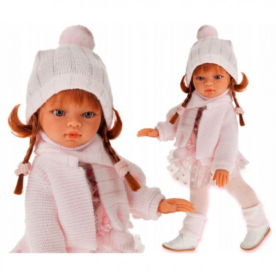 Papusa cu corp moale Emily 33cm roscata cu haine roz Antonio Juan