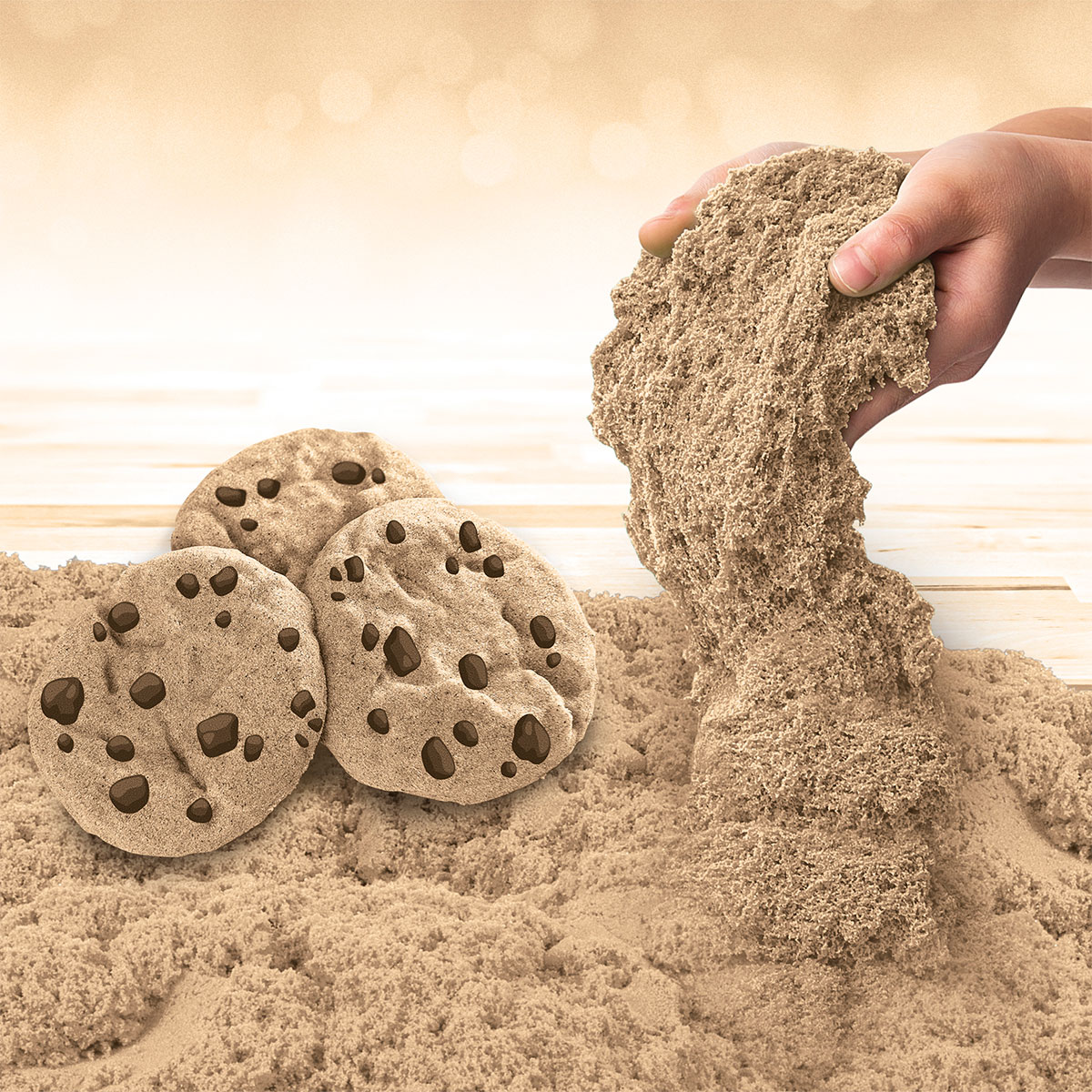 Nisipul kinetic Biscuit bej se aseamana cu aluatul real pe care il folosim la copturi.