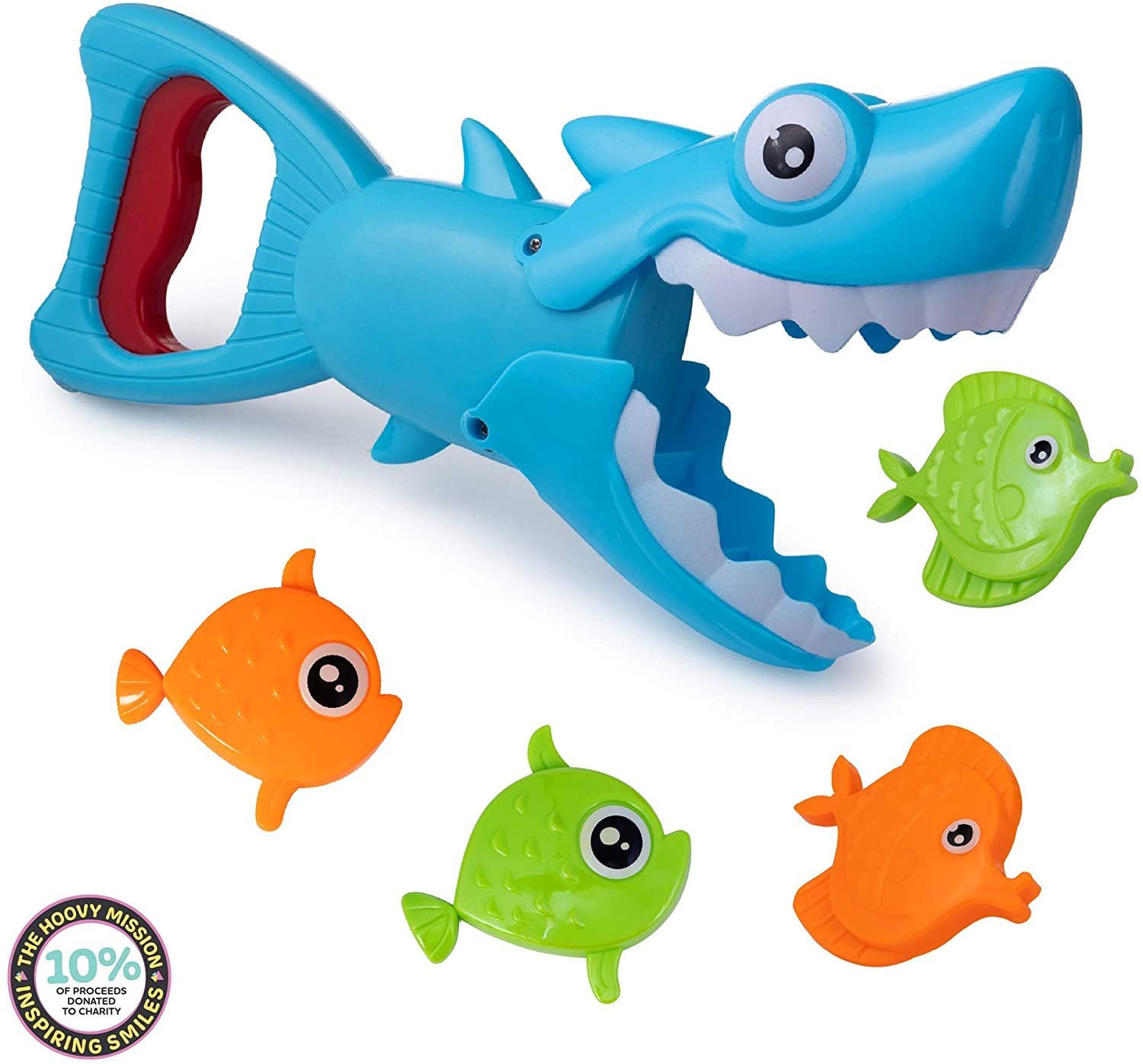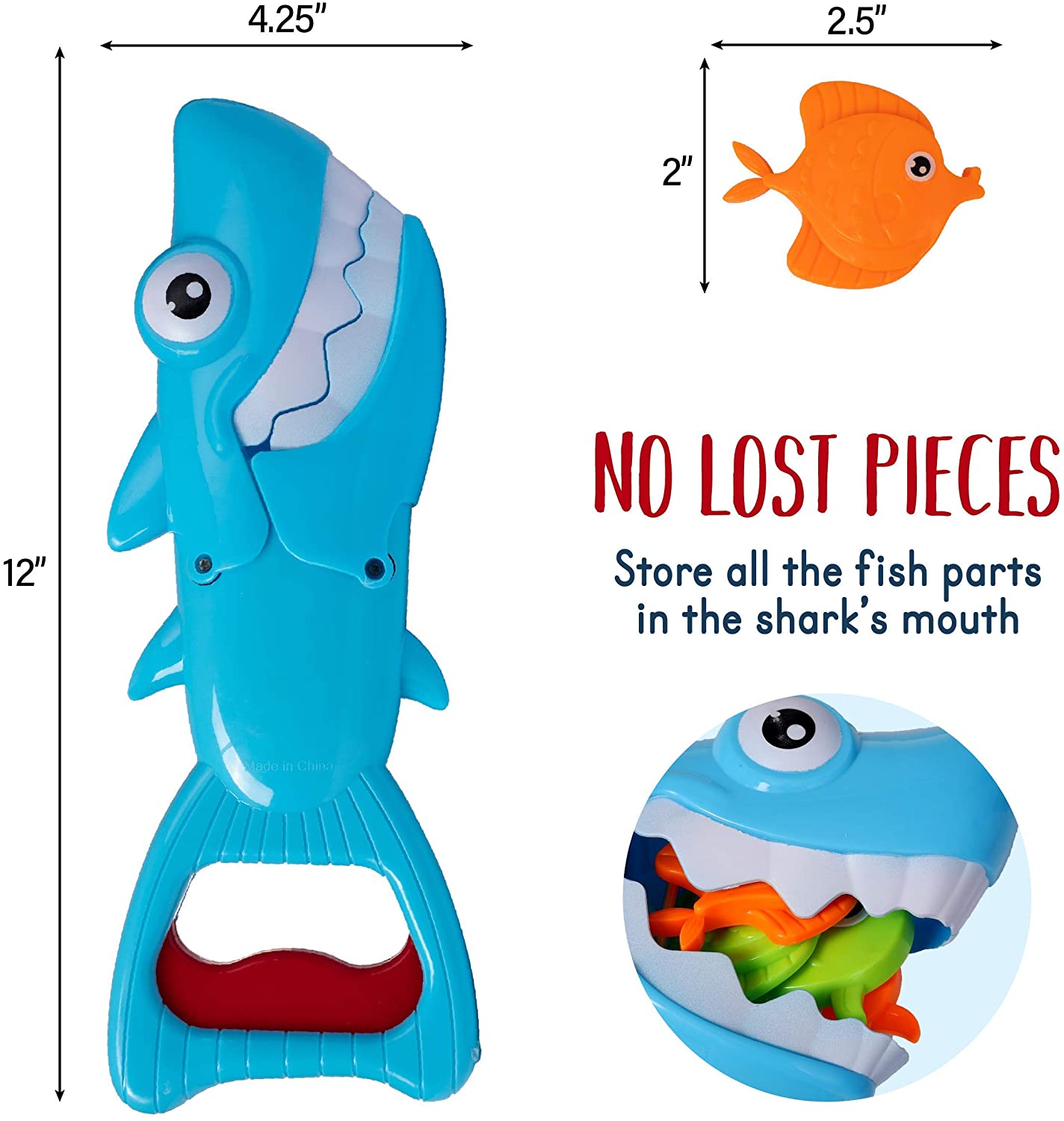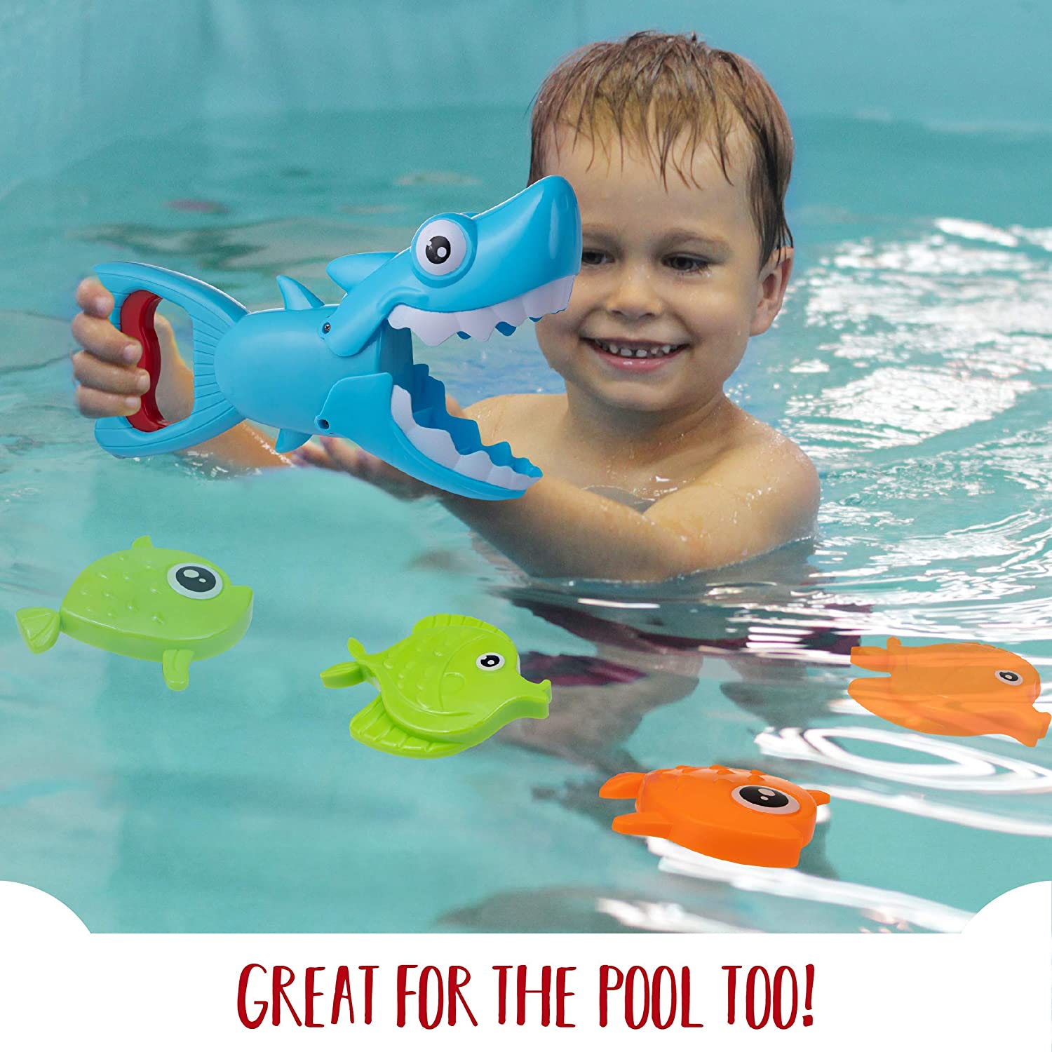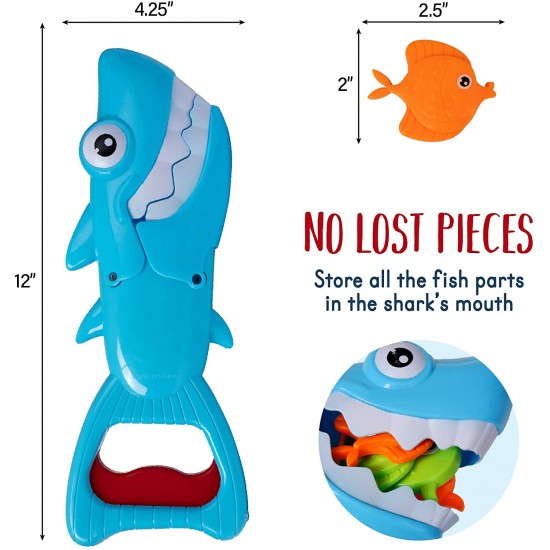 Lasa pestisorii sa pluteasca in apa si foloseste rechinul pentru a-i prinde pe toti. Bucura-te de distractie alaturi de toti membrii familiei.