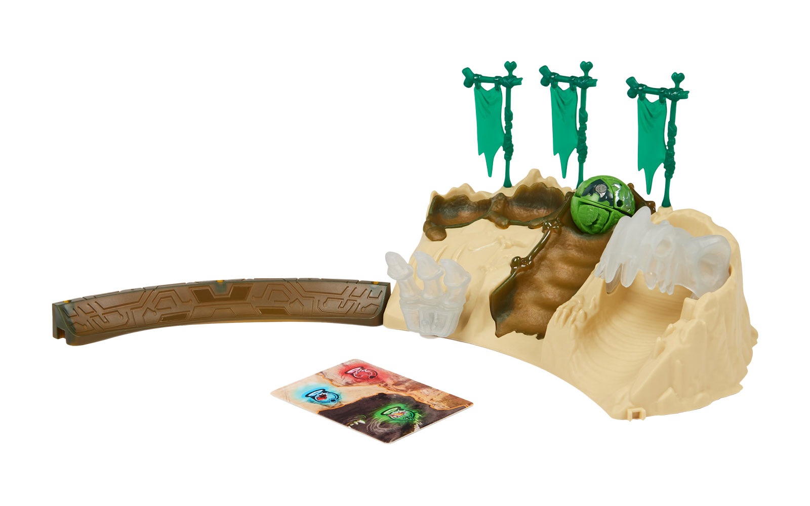 Acest set de joaca si Bakugan sunt tematice bazate pe diferite clanuri din serial. Recreeaza-ti propriile batalii si obstacole cu paleta cu arc, 3 totemuri si piesa de perete pentru un joc unic de fiecare data.