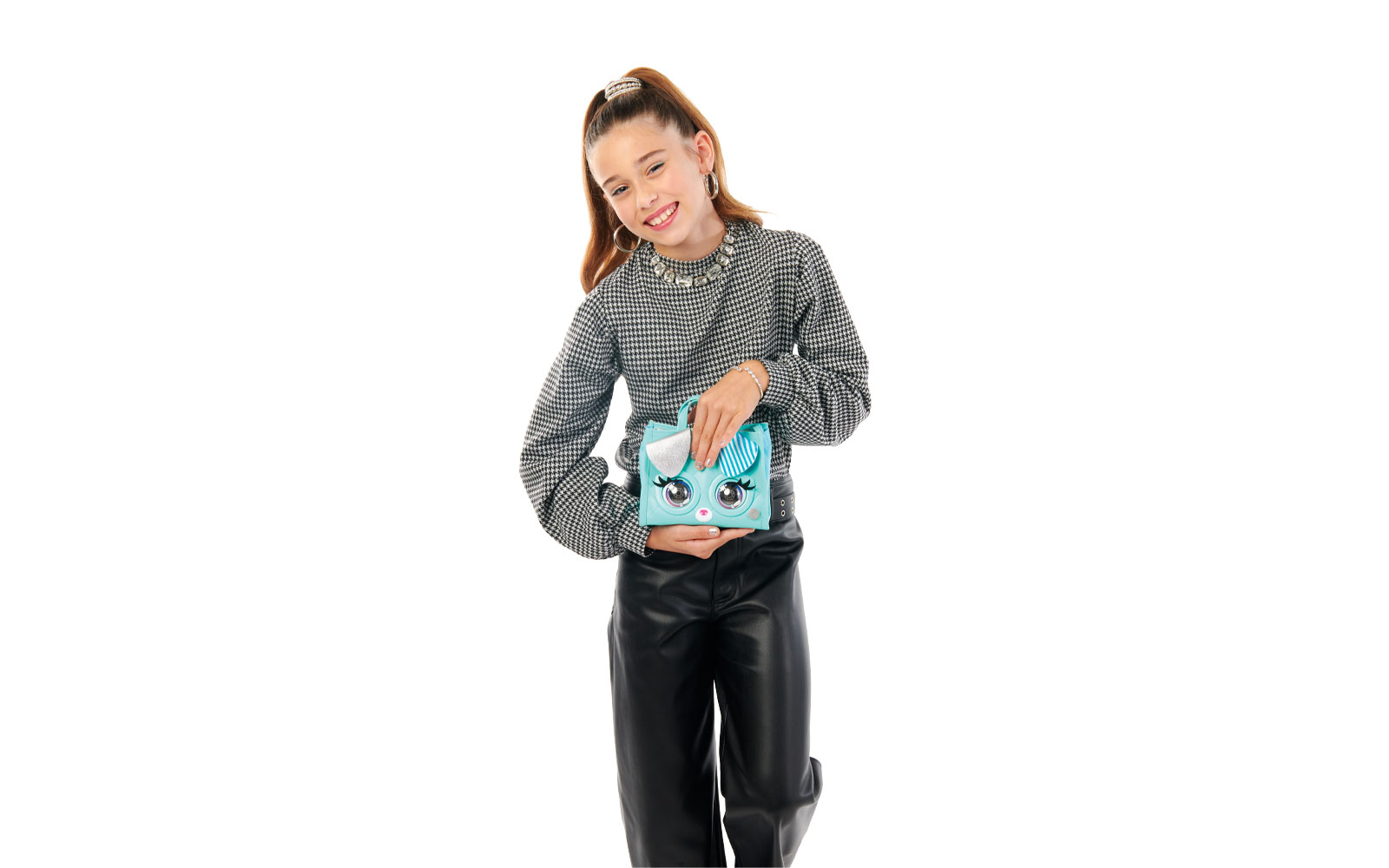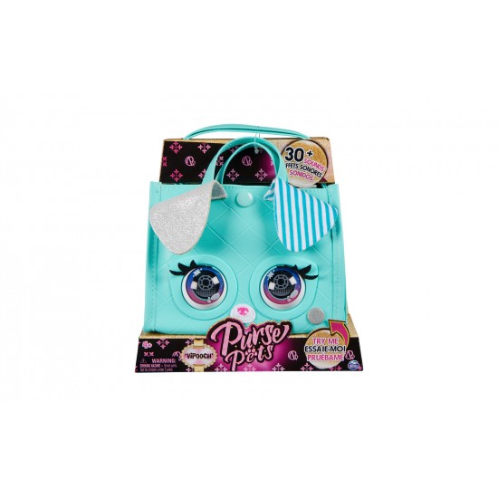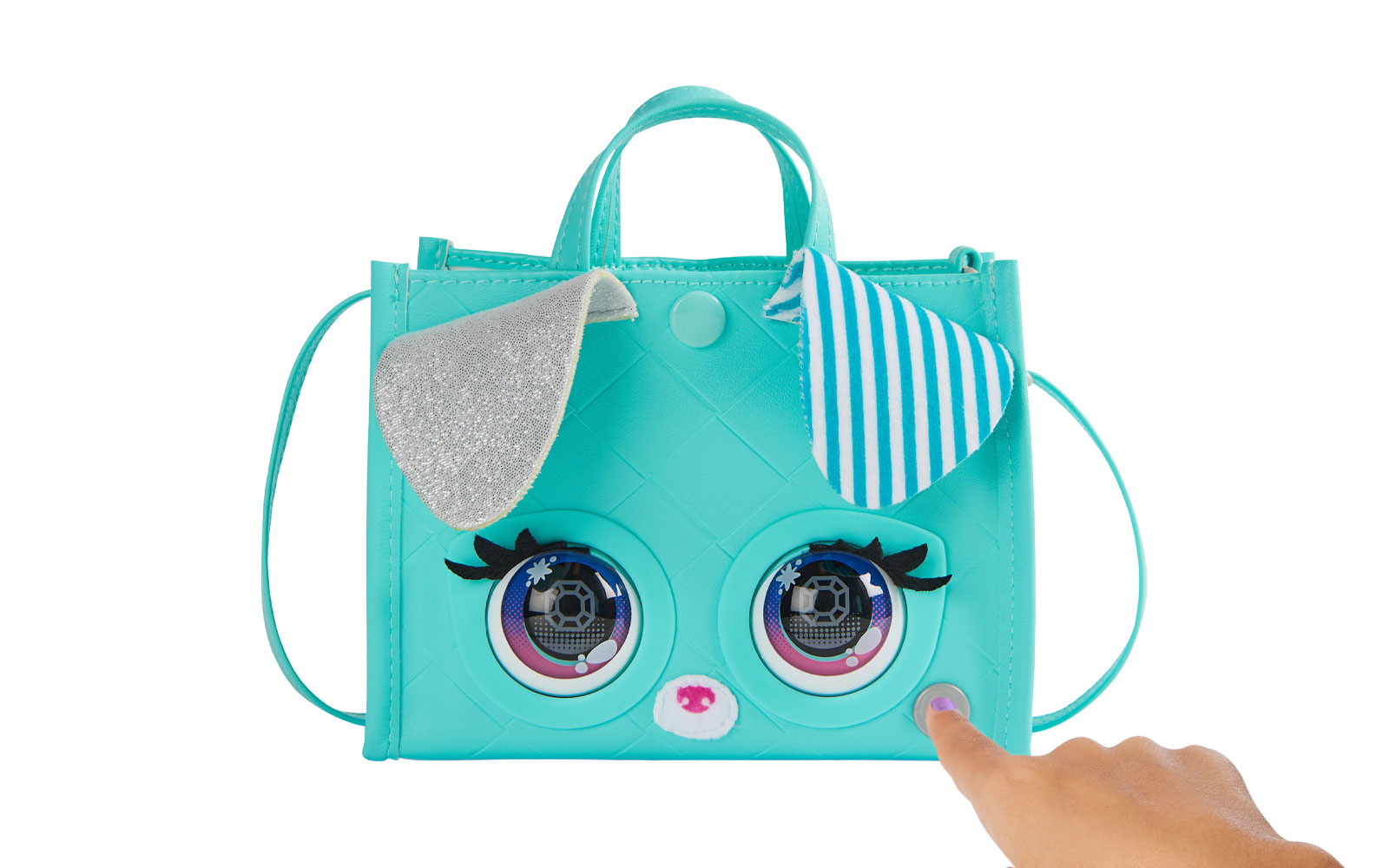 Da viata aspectului tau cu poseta pentru fete Purse Pets Puppy. Aceasta geanta este pline de personalitate. Reactioneaza la atingere, clipeste cu adevarat si are peste 30 de sunete si reactii. Are tesatura azurie, urechi de catelus in carouri si sclipici, ochi si inchidere cu clic. Datorita curelei duble, puteti purta poseta pe brat sau puteti extinde cureaua lunga pana la 101,5 cm pentru a o purta peste umar sau peste corp. In timpul miscarii, atinge-i capul pentru a activa sunete distractive si pentru a o face sa fluture din gene. Apasa-i usor fruntea si va va arunca un sarut.