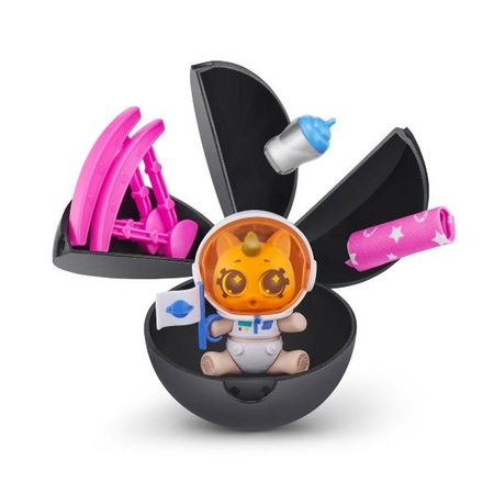 Desfaceti, decojiti si dezvaluie nou-nascutul unicorn! Odata ce iti desfaci dragutul stralucitor in intuneric unicorn, magia continua sa curga cu noua capsula transformandu-se intr-o cada sau o casuta. Asamblati baia, umpleti-o cu apa rece si scufundati-va unicornul pentru a dezvalui un scutec surpriza care isi schimba culoarea. Dupa baie imbraca-i in tinutele lor stralucitoare!