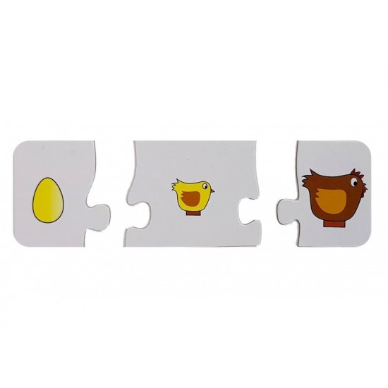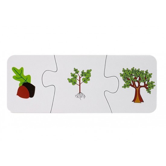 Puzzle educativ cu diferite tematici il va ajuta pe micut sa faca diferenta intre diverse lucruri generale. Va invata ideea continuitatii si cum are loc procesul de dezvoltare in diverse sfere. De exemplu, micutii pot conecta dezvoltarea unui om, procesul de crestere de la bebelus, la om adult, sau cum creste un copacel, cum se construieste un om de zapada si multe alte exemple asemanatoare.