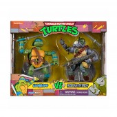 Set Figurine Testoasele Ninja Leonardo vs Rocksteady 15 cm cu articulatii TMNT