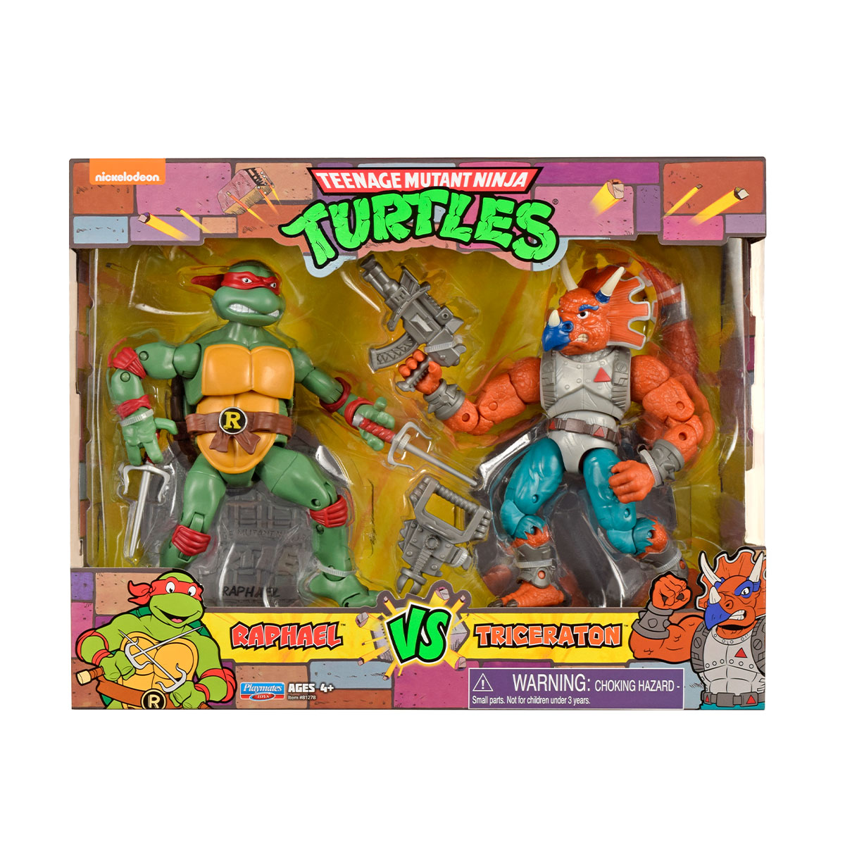 Set Figurine Testoasele Ninja Raphael vs Triceraton 15 cm cu articulatii TMNT