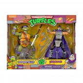 Brandul TMNT care a prezentat lumii istoria testoaselor Ninja vine cu un set de jucarii noi. Donatello impotriva maleficului Shredder. Ambele figurine au membrele mobile cu articulatii si costume detalizate.