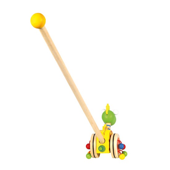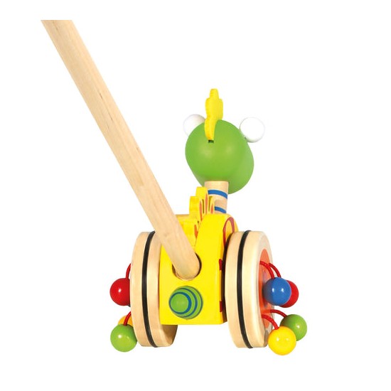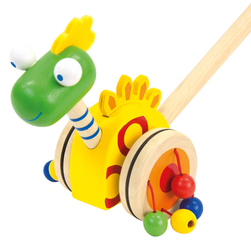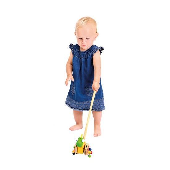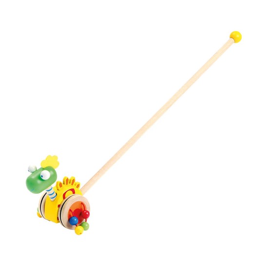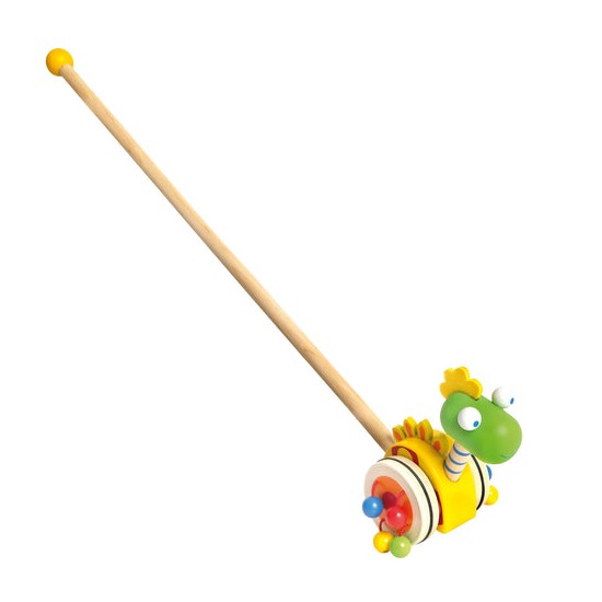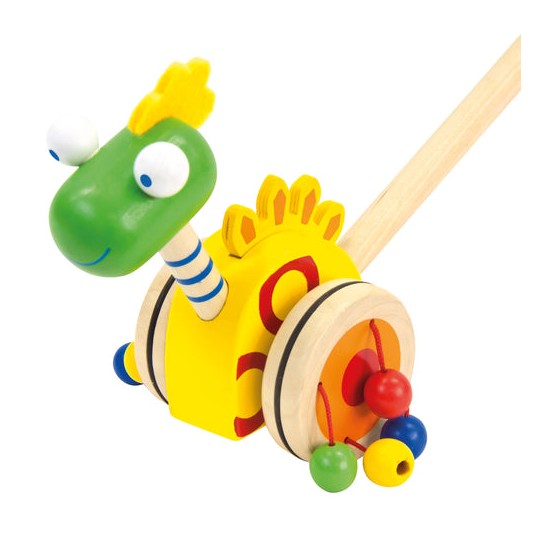 Aceasta jucarie de impins Dinozaur fie ca e trasa sau impinsa, copilul va fi incantat atunci cand jucaria va fi pusa in miscare, datorita labutelor care se misca.